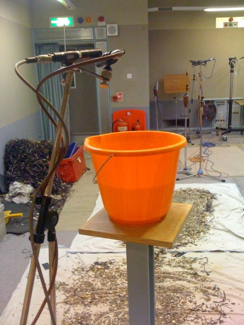 “Paranoid about the phone!” he exclaims, walking straight into the studio. “Yes, take it apart!“ he says, proceeding to dismantle the phone to render it powerless. “Aha! That should do it!” he pronounces, separating front from back from battery and laying the three pieces on the desk in front of him. “Ha ha! Won’t go off now!“